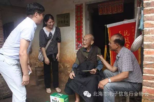 2015年8月15日,在這抗日戰(zhàn)爭勝利70周年之際,北海市電子信息行業(yè)協(xié)會與民革北海市委會聯(lián)合探望了三位抗戰(zhàn)老兵,送上慰問金與慰問品。大家傾聽老兵講述那段槍林彈雨的抗戰(zhàn)經歷,分享來之不易的和平發(fā)展成果,打著拍子為老兵獻唱革命歌曲。