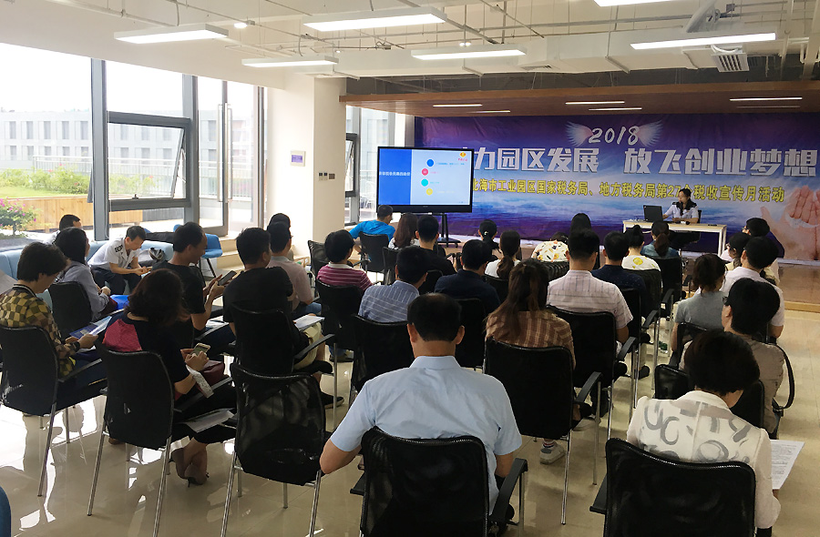 2018年4月25日,北海市工業(yè)園區(qū)國(guó)家稅務(wù)局、地方稅務(wù)局聯(lián)合在中國(guó)電子北部灣眾創(chuàng)空間舉辦了以“助力園區(qū)發(fā)展,放飛創(chuàng)業(yè)夢(mèng)想”為主題的第27個(gè)稅收宣傳月活動(dòng),中國(guó)電子北部灣孵化器40余家企業(yè)代表參與了此次活動(dòng)。