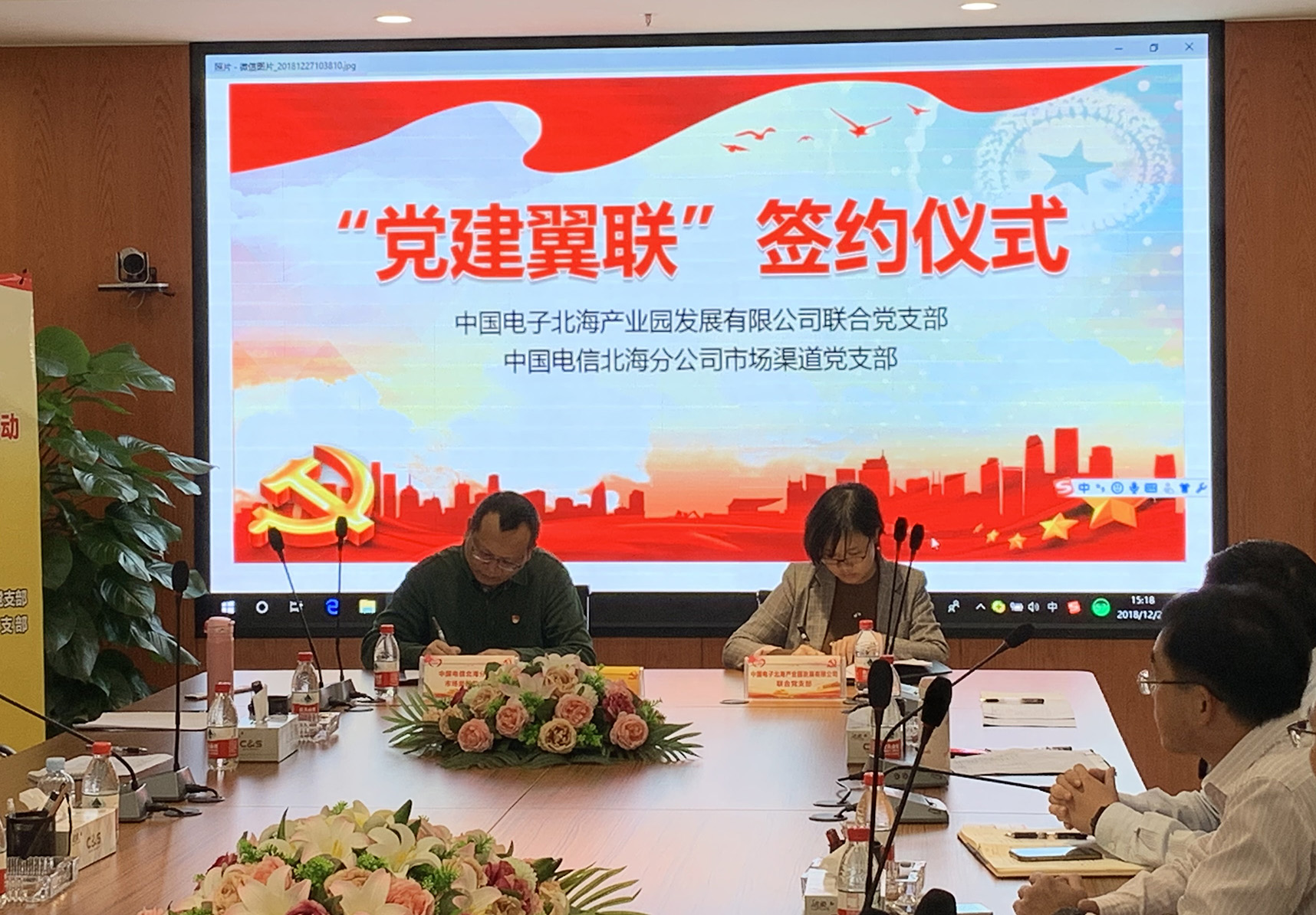 為深入學(xué)習(xí)貫徹黨的十九大精神,堅(jiān)持以習(xí)近平新時(shí)代中國特色社會(huì)主義思想為指導(dǎo),落實(shí)新時(shí)代黨的建設(shè)總要求,充分發(fā)揮基層黨支部的主體作用,激發(fā)黨員的活力。2018年12月27日,中國電子北海產(chǎn)業(yè)園發(fā)展有限公司聯(lián)合支部委員會(huì)、中國電信股份有限公司北海分公司市場渠道支部委員會(huì)簽署了“黨建翼聯(lián)”合作書,旨為整合雙方在黨建、科技、電子信息產(chǎn)業(yè)的資源優(yōu)勢,以共建共享為基礎(chǔ),以合作共贏為目的,積極拓展黨組織功能,發(fā)揮黨員先鋒模范作為,積極推進(jìn)事業(yè)發(fā)展,助力北海電子信息產(chǎn)業(yè)升級(jí)轉(zhuǎn)型。